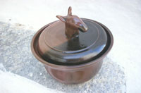 Alexandra and John were very busy and made Ceramics....the whole winter long...!. They are both very mad about me, I mean they really love me... so John made little heads that look like me and put them on the pots that Alexandra made on a thing that turns, and they call a "wheel"!! . Then, they would put everything in the "kiln" and turn it on.... It burned for a long time, and it was great, because it made the house very warm for a couple of days...! Then the Ceramics came out and everybody was very, but very excited!!